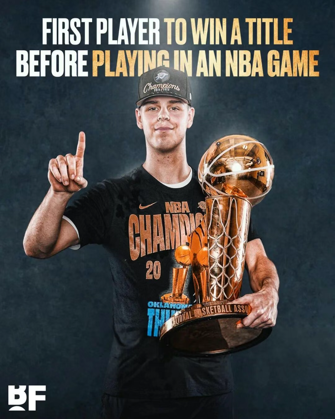 更倒霉的是,索伯已是雷霆过去四年第三位赛季报销的新秀。2022 年,榜眼秀切特・霍姆格伦在半职业联赛中右脚跗跖关节受伤,缺席整个 2022-23 赛季;好在切特伤愈回归后迅速爆发,2023-24 赛季场均 16.5 分 7.9 篮板 2.4 助攻 2.3 盖帽,命中率 53.0%/37.0%/79.3%,入选最佳新秀一阵,上赛季即便只打 32 场,也助力雷霆夺冠,成为球队不可或缺的 “冠军三当家”。