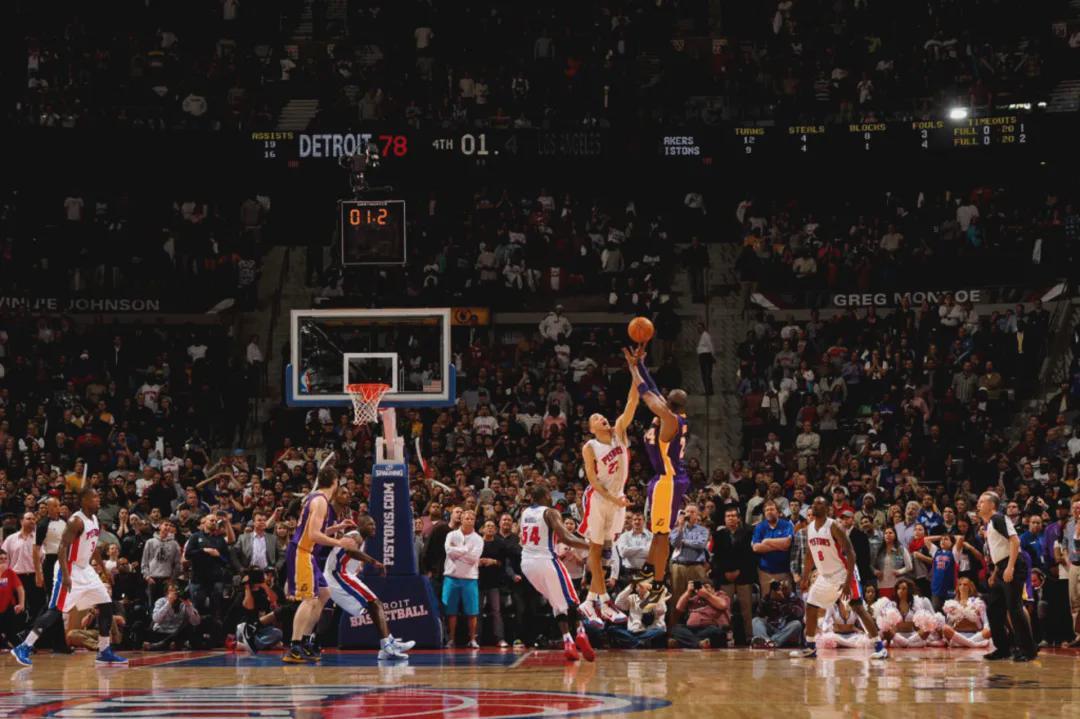 2004年总决赛,仅仅二年级的普林斯主防科比,后者则打出了除2000年之外效率最低的一次总决赛,场均22.6分,命中率只有38.1%。