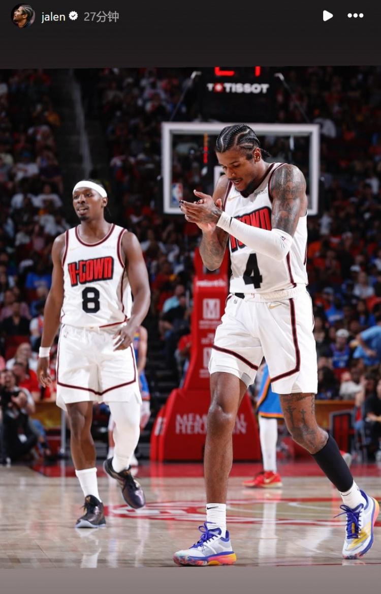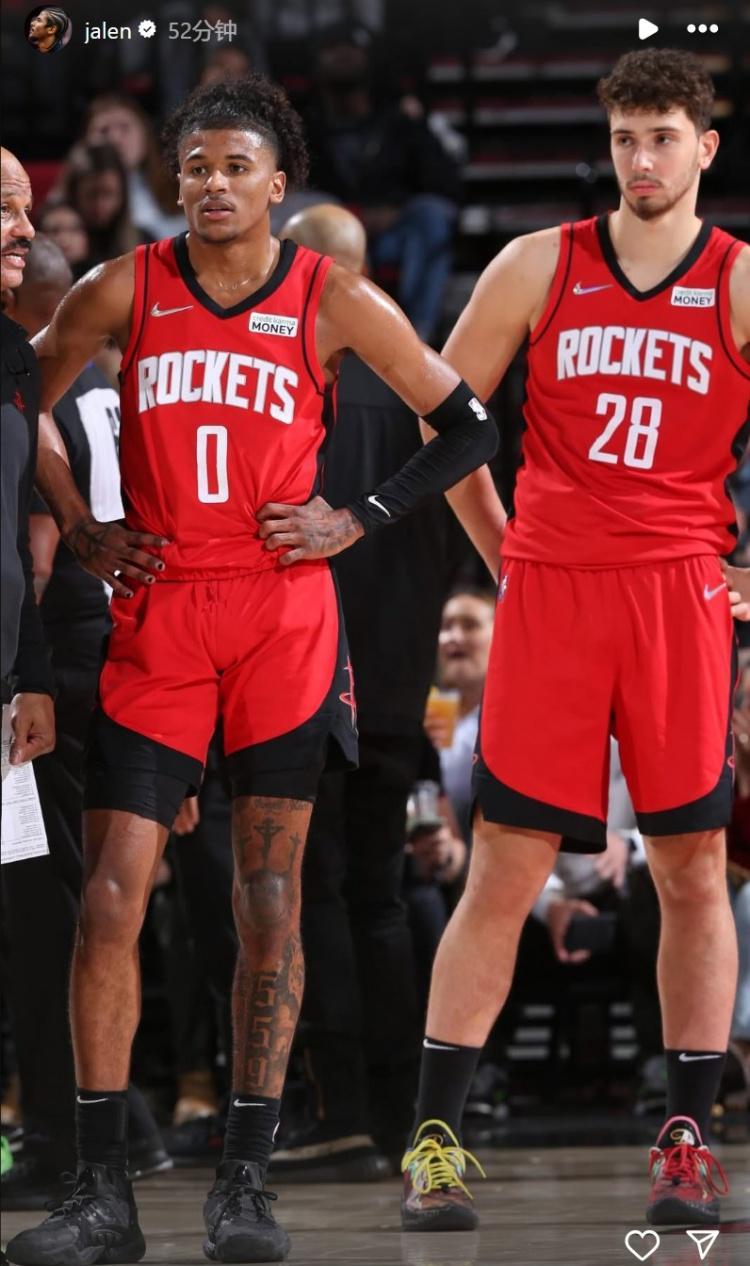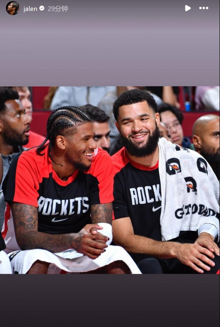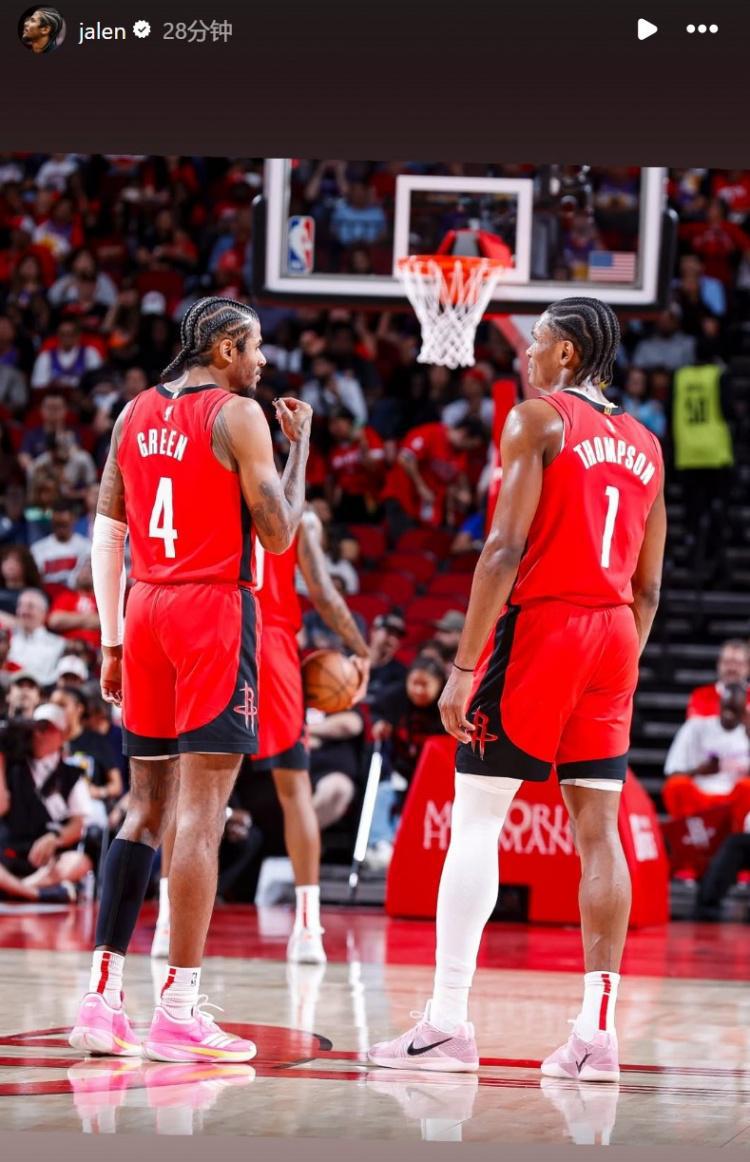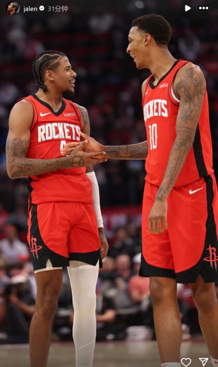杰伦-格林在INS上晒了自己和火箭队友的合照进行告别。